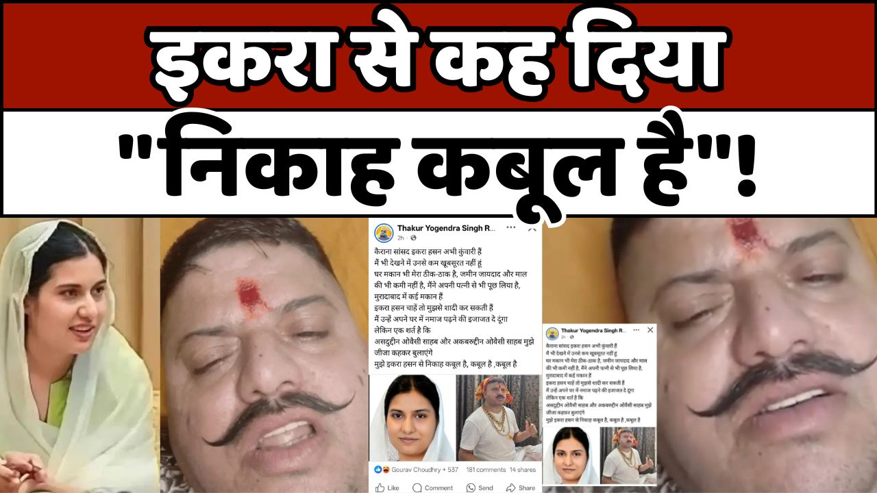 उन्होंने वीडियो में खुलेआम इकरा हसन से ‘निकाह कबूल’ करने की बात कही, साथ ही कुछ शर्तें भी रखीं, जिनमें असदुद्दीन और अकबरुद्दीन ओवैसी को ‘जीजा’ कहने की बात भी शामिल थी।